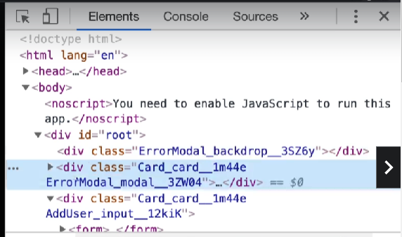 개발자도구로 확인해보면 div로 감쌌을때와 다르게 렌더링 되지 않는걸 확인 할 수 있다.